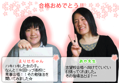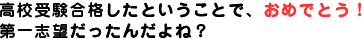 はい、第一志望に合格できて、滑り止めの私立の方にも合格できたのでよかったです。