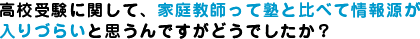塾は友達がいるし、他の人と一緒じゃ嫌だけれども、家庭教師だと、