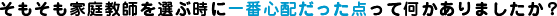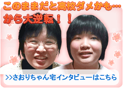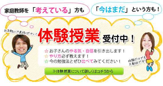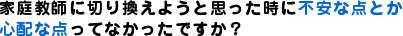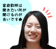 そういうことは色々考えてくださってたみたいで、家庭教師の方を 選ぶにあたってあらかじめ色んな条件をリサーチしていてくれたので。例えば男の人がいいか 女の人が良いかとか、どんな性格の人が良いかとか、明るい人が良いのか静かな人が良いのか、 そういうことを細かく聞いてくれたので、初めてきた人からわりと相性の良い方に来てもらったと思います。