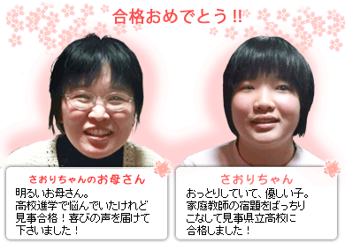 成績が伸びて本人も高校受験に失敗せずに合格しまして、よかったと思います。