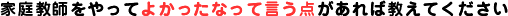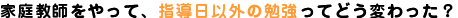 塾講師だと、自分の話とか生徒の話って言うのが、話すことは禁止されているので 家庭教師だとお互い個人的な話もすることができて、すごく仲良くなれたな、 っていうのは感じました。
