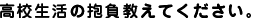 私の行く高校は課題の量とか授業の進むスピードが半端じゃないので、受かったからって 安心しないで、これからがまた勝負があるので、あきらめないで日頃から努力して勉強を 怠らないでいきたいと思います。