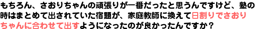 ほんと相当宿題を出して、いろいろこなしていく力っていうのを身につけさせました。
