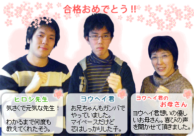 2011年春、受験という大きな壁を乗り越えた、生徒さんたちから、