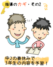 で、2年生の夏休みで1年生の復習をやってもらって、休みの度にその前の段階の
