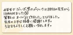 4年生でだいぶ学力がついたと担任の先生からほめられてました(^v^)
