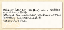 娘は先生の事をとても気に入っていて、仲良く勉強出来ているので、親としても、とても安心しております。