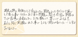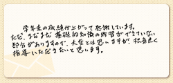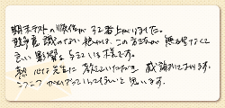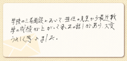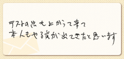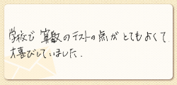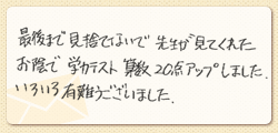 最後まで見捨てないで先生が見てくれたお陰で学力テスト算数20点アップしました。いろいろ有難うございました。