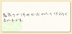 成績の向上だけでなく、勉強の中身をみのらせていってもらいたいです。