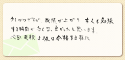少しづつですが、成績が上がり、本人も勉強する時間が多くなり良かったと思います。