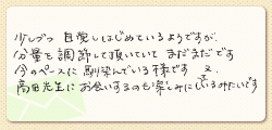 今のペースに馴染んでいる様です。又、●●先生にお会いするのも楽しみにしているみたいです。