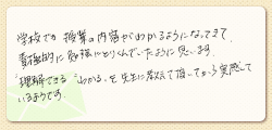 宿題を出してもらうので、勉強をする習慣ができてきたのが、良かったなと思います。