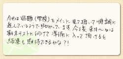 今後、来月〜は期末テストに向けて準備に入って頂けると結果も期待できるかな?!