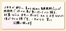 。計算などは本当に早くなり、九九も出来なかった頃がウソの様です。これからも宜しくお願い致します。