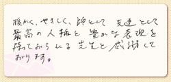 暖かく、やさしく、師として、友達として、最高の人柄と豊かな表現を持っておられる先生と感謝しております。