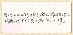 思っていたいじょうの事を教えて頂きました。お願いしてすごく良かったと思っています。