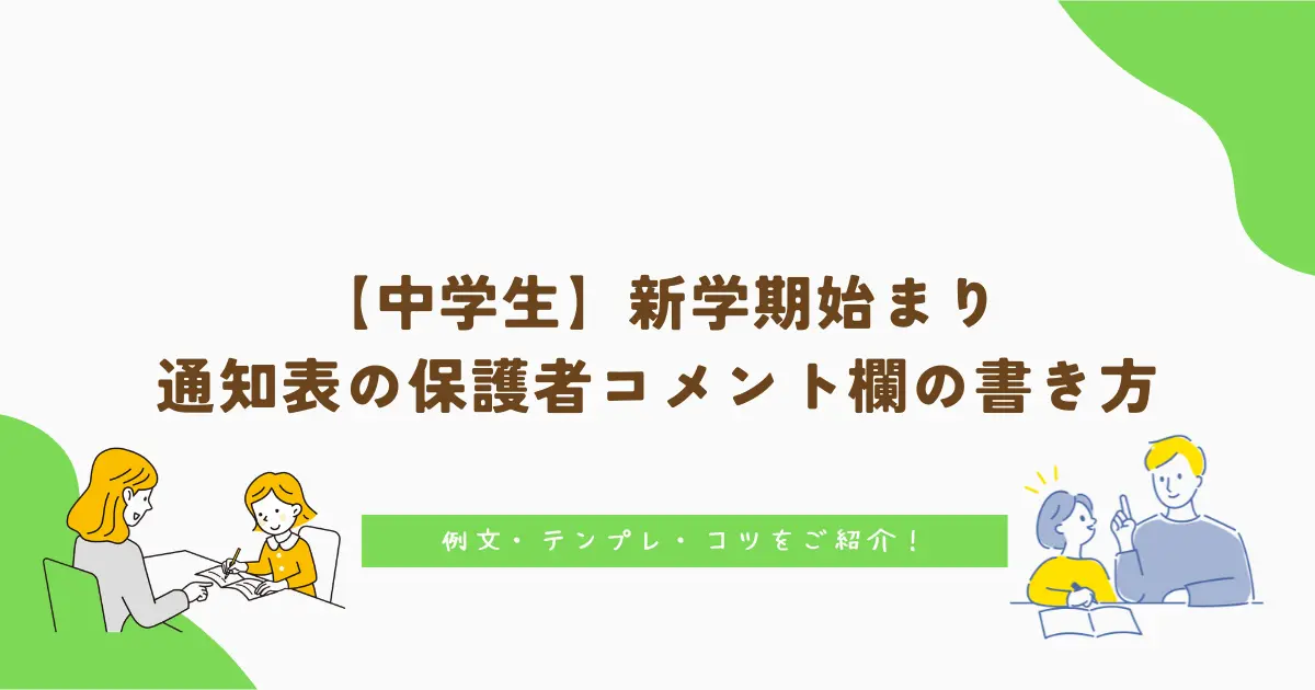事前に何を書けばよいか熟知しておけば、いざ保護者コメント欄を発見してもあせることなく取り組めます。そこで今回は今までの続編として、新学期始まり、つまり『中学生になって初めての通知表』に特化し、