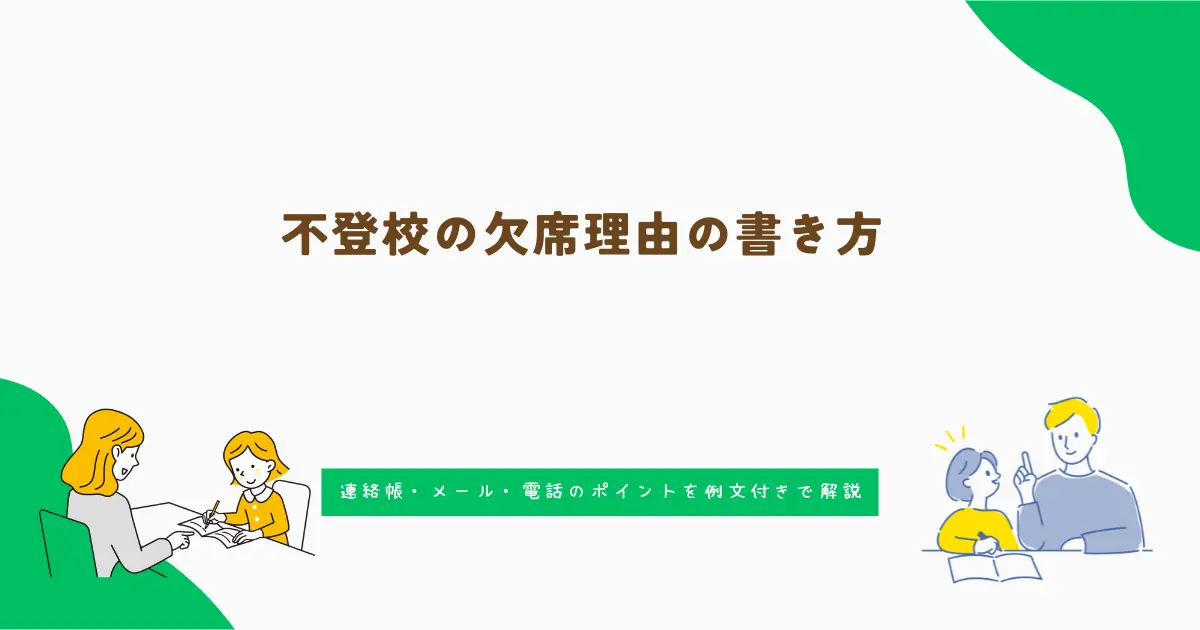 不登校の欠席理由の書き方に悩んでいませんか?…お子さんが不登校の場合、「欠席理由はどう伝えればいいのだろう」と思い悩む保護者の方は少なくありません。連絡の頻度が高いからこそ、