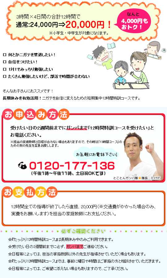 家庭教師のガンバ>12時間特訓コース