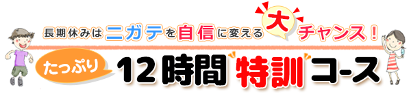 そこで、私たち家庭教師のガンバでは、 ご希望の方には長期休みに苦手を得意に変える集中授業≪12時間特訓コース≫を実施。 3時間のマンツーマン指導を4回行う『苦手克服のための特別授業』がお得な料金で受けられます。